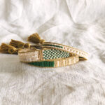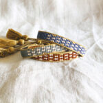 An old-school favourite gets a ladylike makeover with delicate glass beads. I love Miyuki Japanese beads for their superb quality and huge range of sophisticated colours. They are handwoven on cotton cord and trimmed with a tassel, for a bit of flair : ) Each bracelet closes with a gold-toned adjustable slider that fits all sizes.